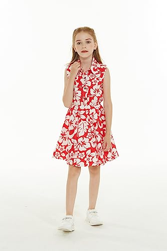HOT ! Girl Hawaiian Collar Shirt Dress in Classic Hibiscus
