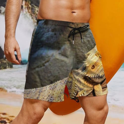 HOT ! Bearded Dragon Lizards Men's Swim Trunk Quick-Dry Shorts with Mesh Lining And Pockets