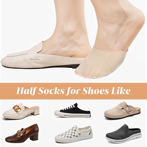 • Perfect Size: Each socks for mules is 10.5x10cm/ 4.13x3.94inch long and wide. Suitable for most people's foot shapes, ensuring a perfect fit on your forefoot, ultra-thin design ensures perfect invisibility in high heels, leaving no trace, and provides a soft and comfortable wearing experience.