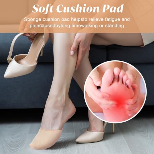 More information about 6 Pairs of Toe Topper Socks Women, Toes Cover Socks, Ball of Foot Cushion Sock with Sponge Cushion, Women's Toe Cover with Padding, Suitable for High Heels, Pumps (Black, Skin Color)