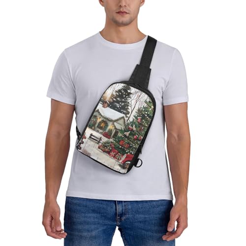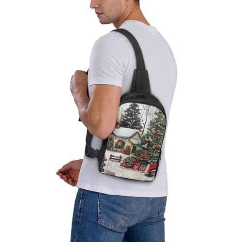 HOT ! Farmhouse Christmas Print Messenger Bag Men Women Adjustable Shoulder Bag Travel Hiking Chest Bag Black One Size