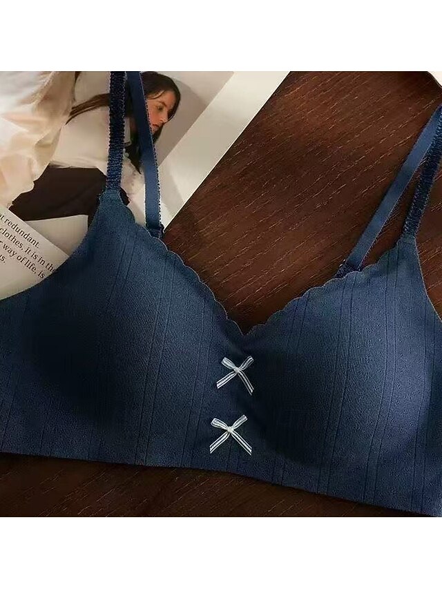 Women's Sexy Lingerie Bra BowNightwearNylon POLY Daily Wear Sweet Light Blue White Pink Royal Blue Green Spring & Summer Fall & Winter 1