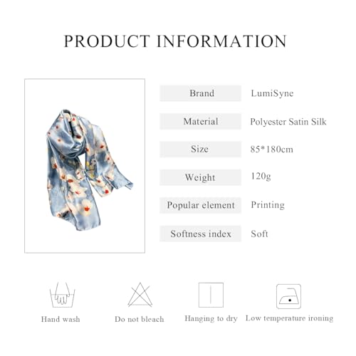 • IDEAL GIFT: LumiSyne's scarf is an ideal accessory or gift for all seasons and occasions. Available in a range of colors and variety of patterns. Our products are suited to all personal tastes. Perfect for Weddings, Anniversaries, Valentine's Day, Mother's Day, Thanksgiving, Christmas etc. Silk scarves with good blessings are especially ideal for gifting to family or friends on celebratory dates such as birthdays and New Years.
