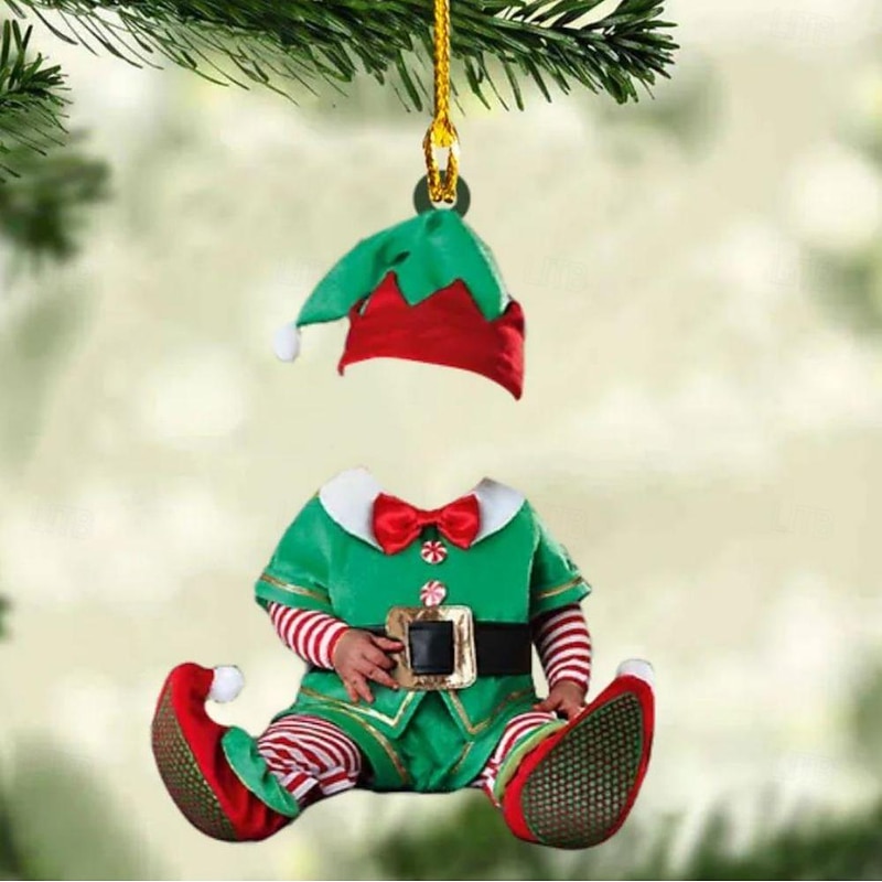 Personalized Photo Christmas Ornaments Acrylic 2D Custom Elf Baby Face Hanging Tree Ornaments Hanging  Decoration Hanging Pendant Gifts 12
