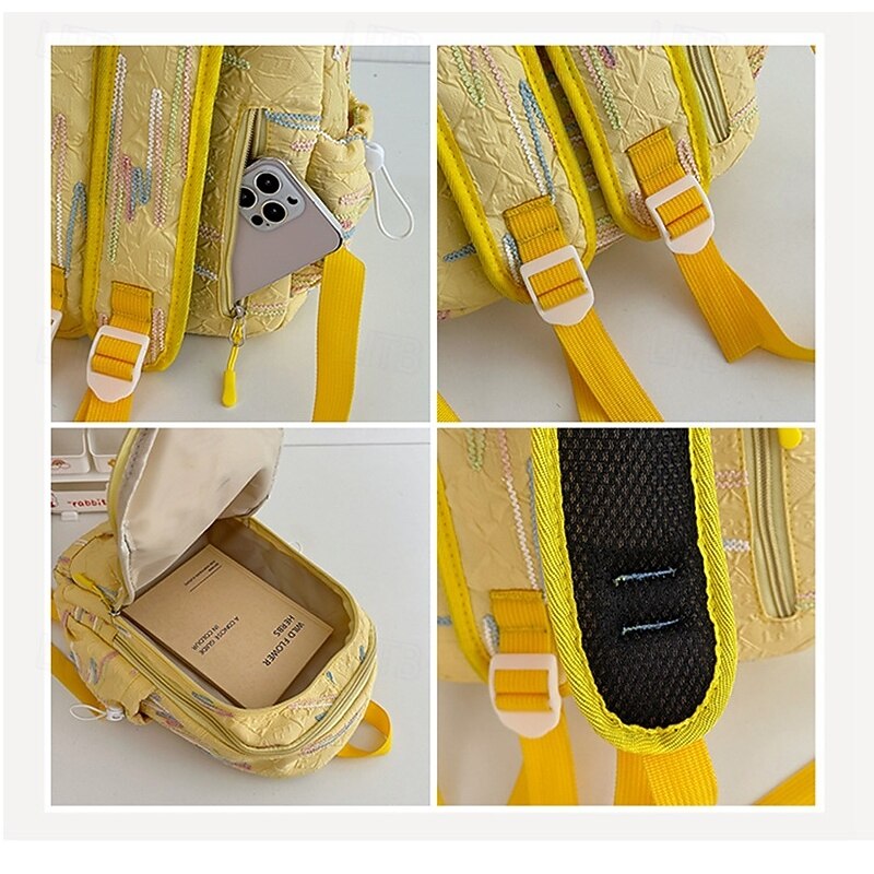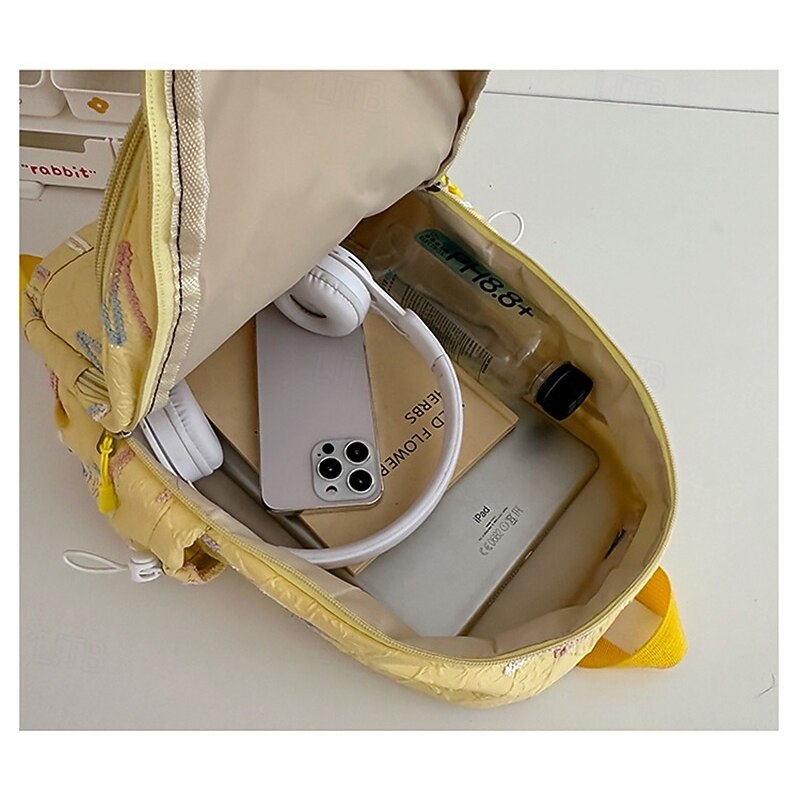 Girls' Pastel Pink Quilted Backpack – Cute Lightweight School Bag with Cloud Keychain and Front Drawstring Pocket 10