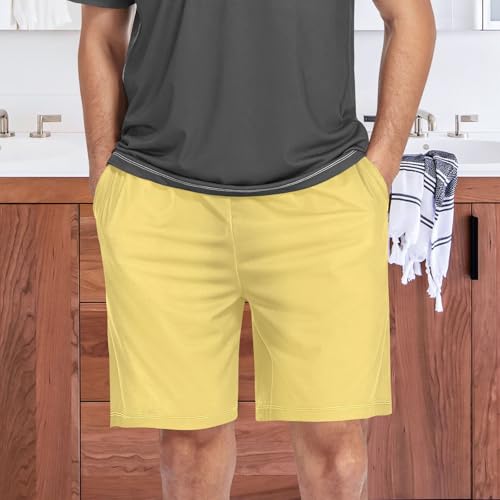 • Elastic Waist & Pockets Design: Elastic waist design, makes the mens sleep shorts easy to put on and take off, cotton rope waist thread, can fix the waistband. The lounge shorts have pockets on both sides, which is convenient for carrying personal belongings.