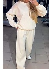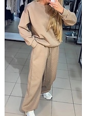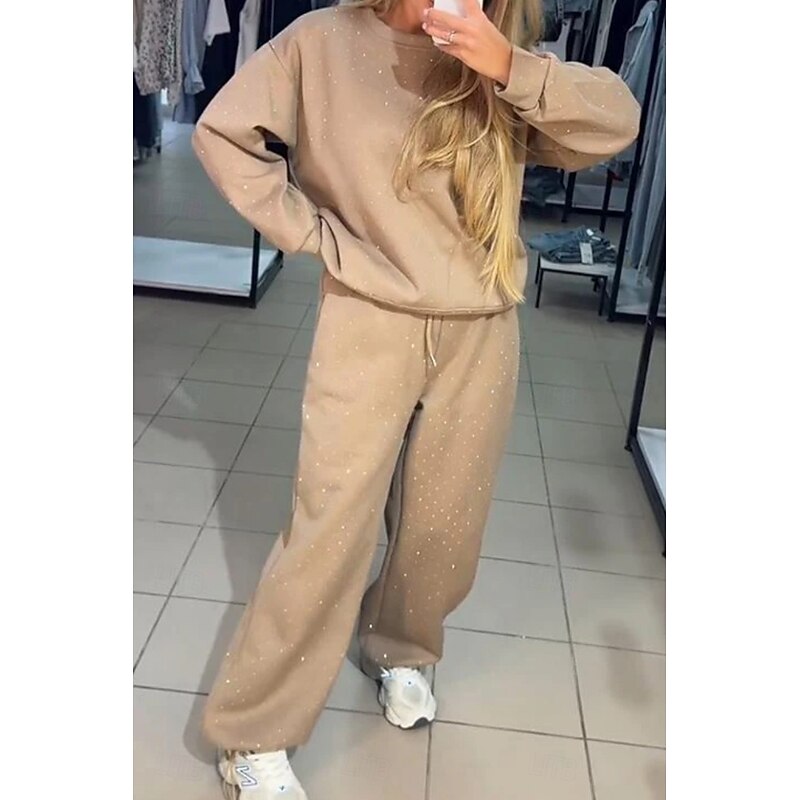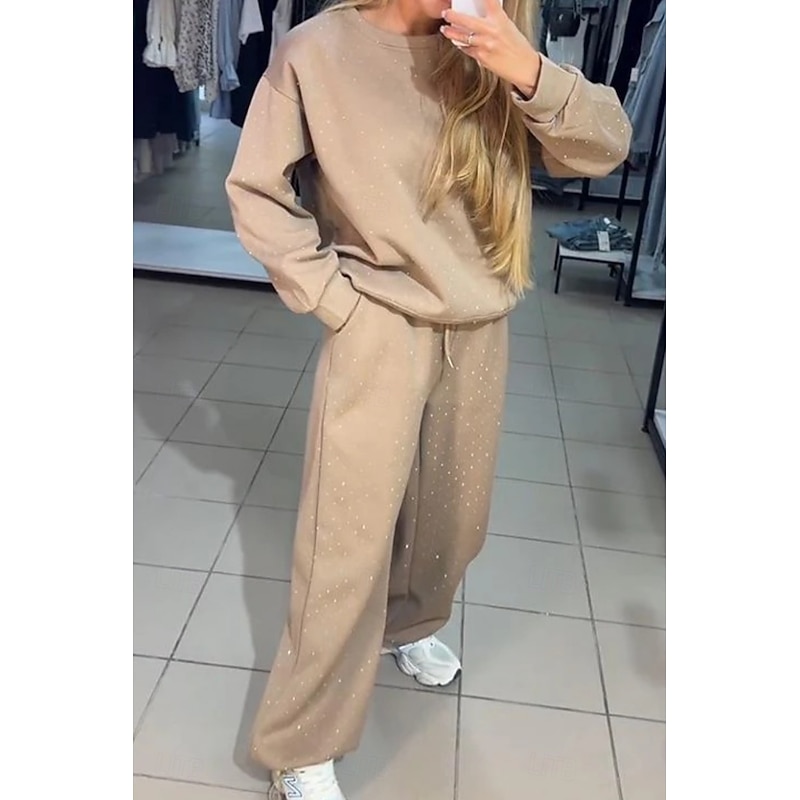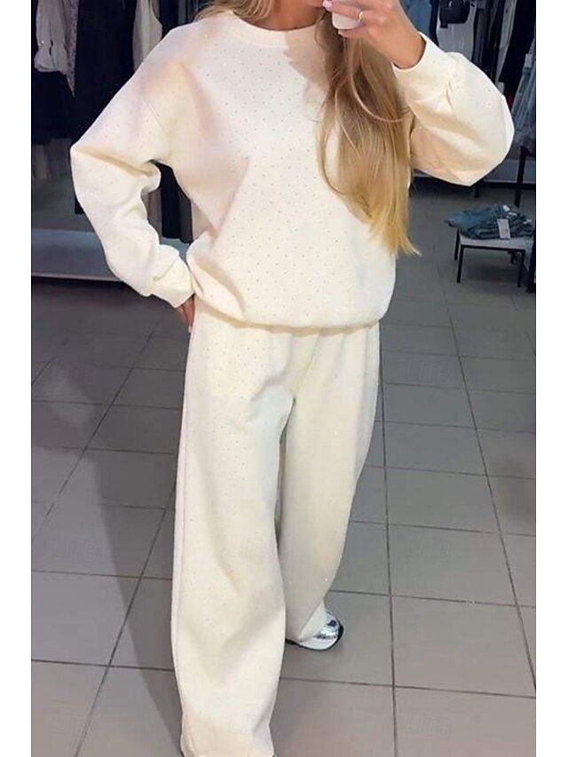 More information about Women's Fashion Streetwear Pants Sets Bolero Top Long Sleeve Crew Neck Solid Color Sequins Outdoor Work Casual Black White Blue Fall Loose Fit