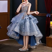 More information about Kids Girls' Party Dress Sequin Short Sleeve Performance Wedding Ruched Mesh Fashion Princess Polyester Midi Party Dress Swing Dress Summer Spring 3-12 Years Blue