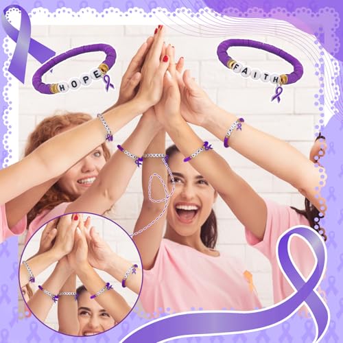 HOT ! 24 Pcs Purple Pancreatic Cancer Awareness Products Overdose Awareness Items Purple Ribbon Epilepsy Bracelets Pancreatic Cancer Gifts for Domestic Violence, Alzheimer, Lupus Charity Event