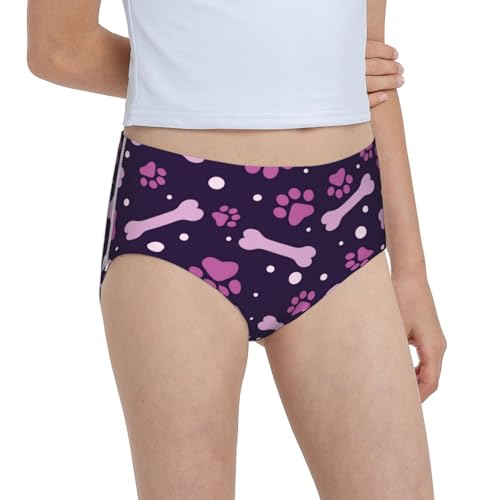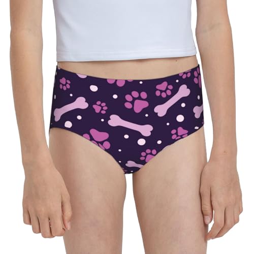 Paw Print And Bone Purple Girls' Underwear Soft Cotton Little Girls Panties Comfort Briefs 7