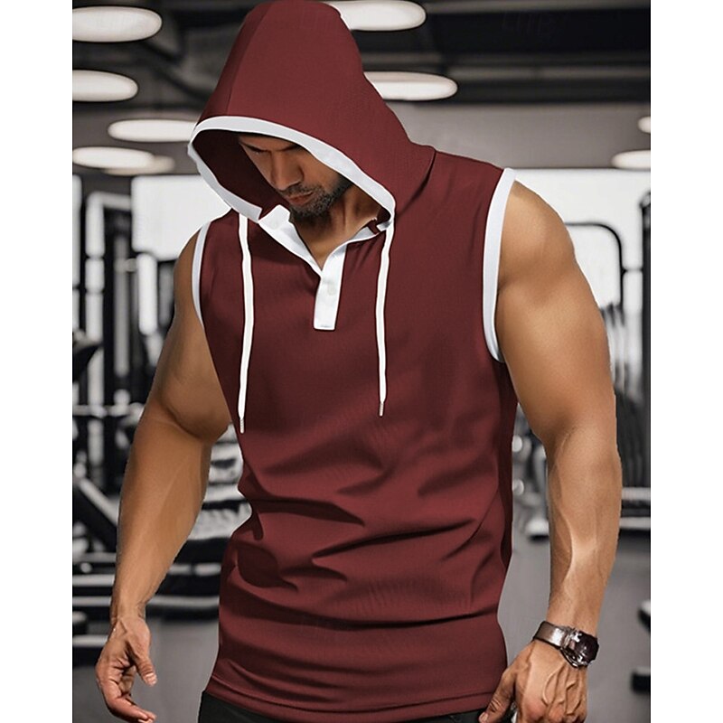 Men's Tank Top Vest Top Undershirt Sleeveless Shirt Sleeveless Hooded Summer Color Block Fashion Designer Basic Patchwork Vacation Street Going out Black White Red Top Tee for Men 3
