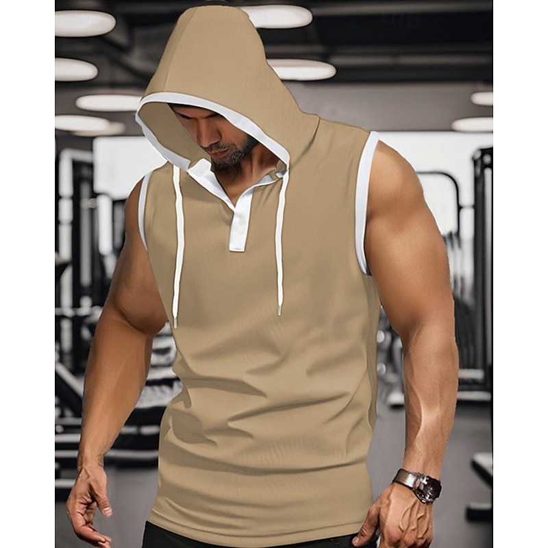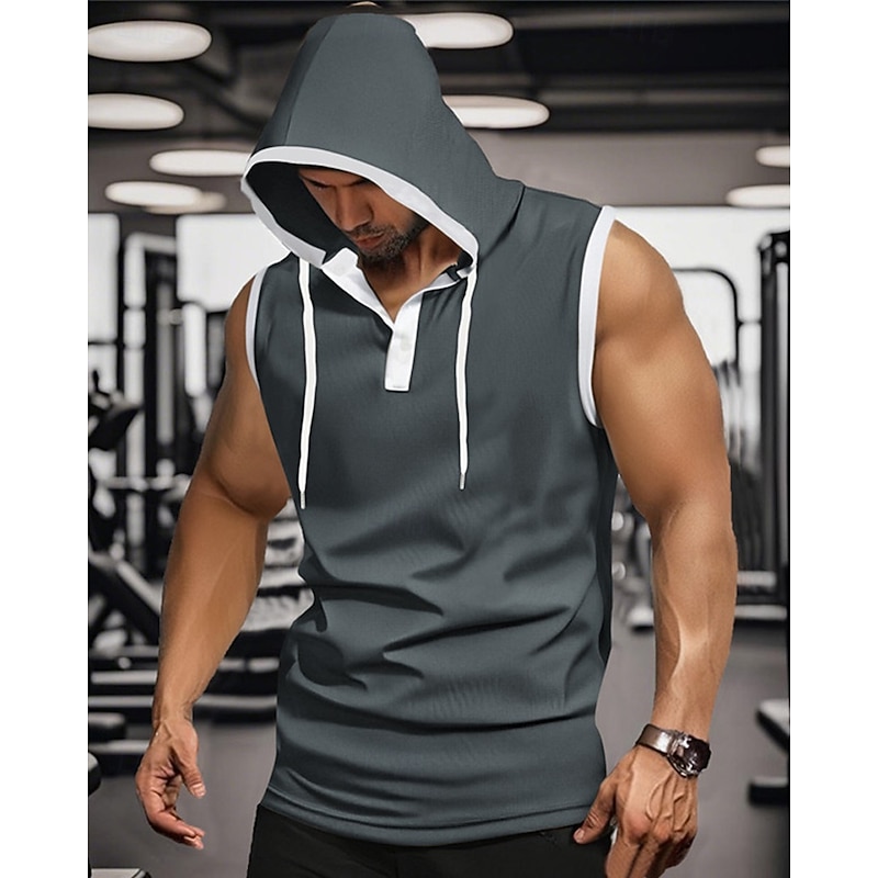 Men's Tank Top Vest Top Undershirt Sleeveless Shirt Sleeveless Hooded Summer Color Block Fashion Designer Basic Patchwork Vacation Street Going out Black White Red Top Tee for Men 20