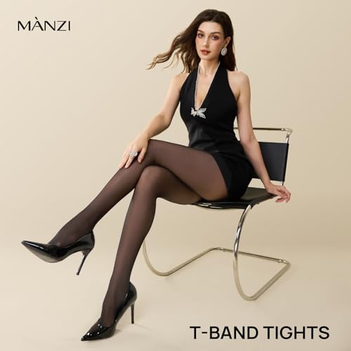 More information about MANZI 2 Pairs Sheer Tights for Women 40 Denier T-Crotch Pantyhose Sheer to Waist Tights High Waist Stockings(1 Pair Black + 1 Pair Natural Nude,S/M)