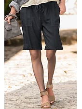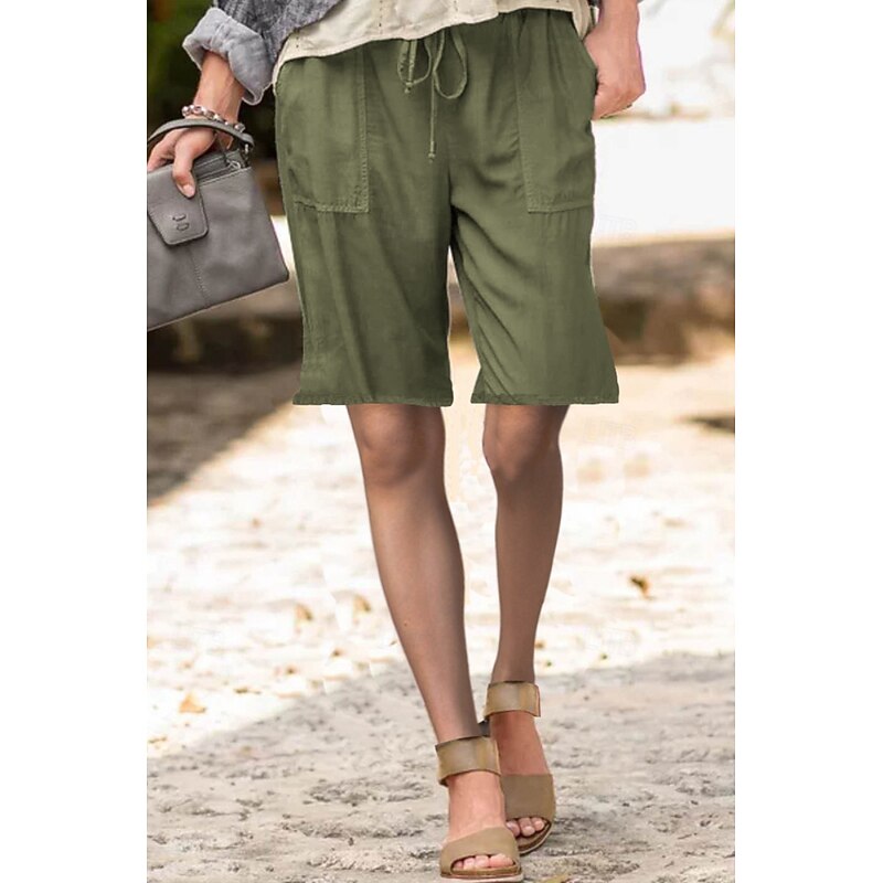 More information about Women's Cotton Linen Shorts Shorts Slacks Streetwear Casual Short Natural Plain Pocket Elastic Drawstring Design Comfy Outdoor Street Daily Wear Going out Navy Black White Light Green Summer Regular