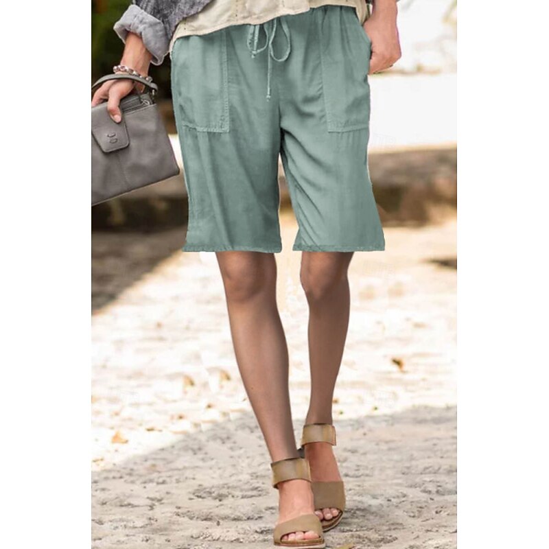 Women's Cotton Linen Shorts Shorts Slacks Streetwear Casual Short Natural Plain Pocket Elastic Drawstring Design Comfy Outdoor Street Daily Wear Going out Navy Black White Light Green Summer Regular 8