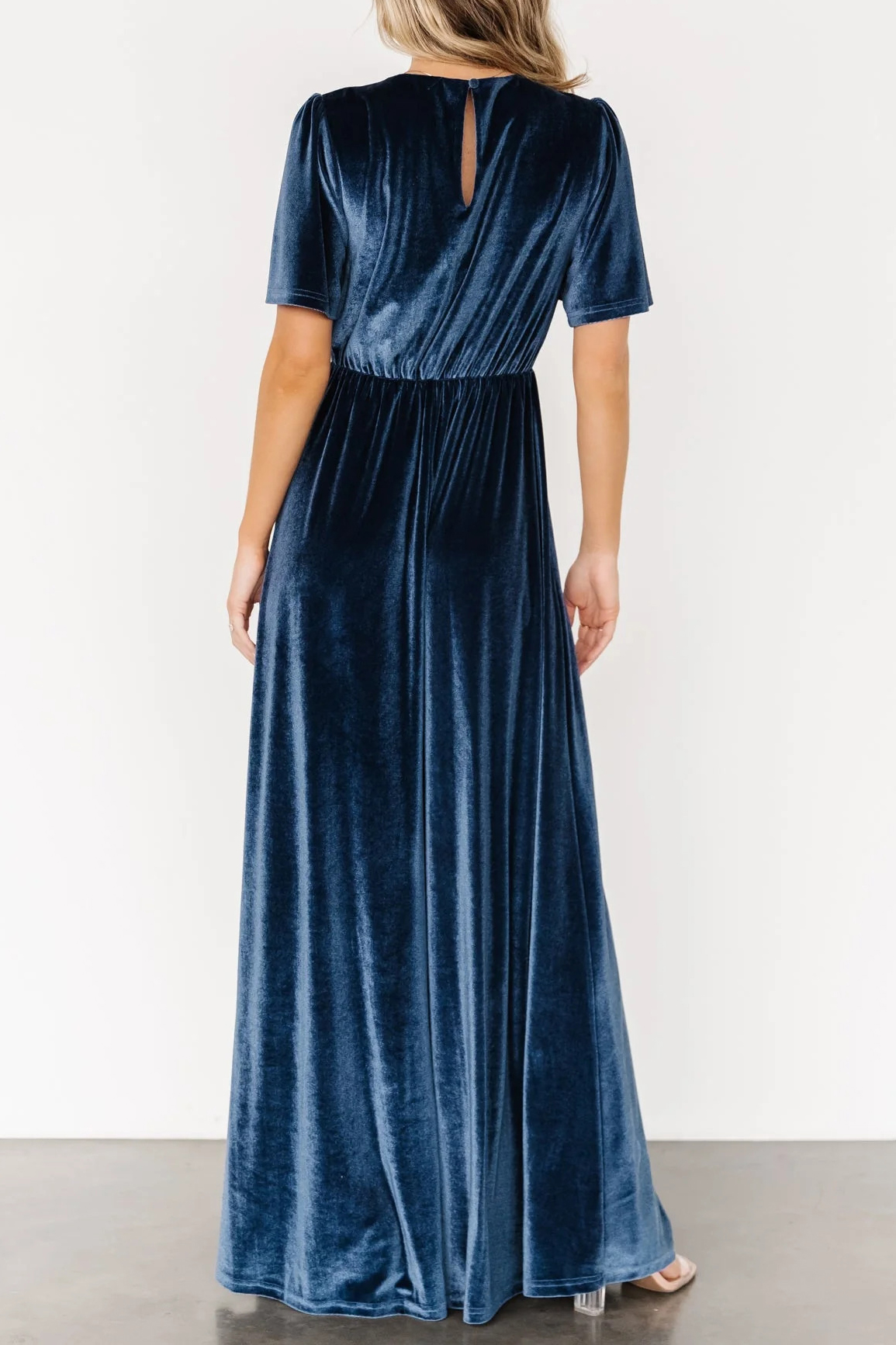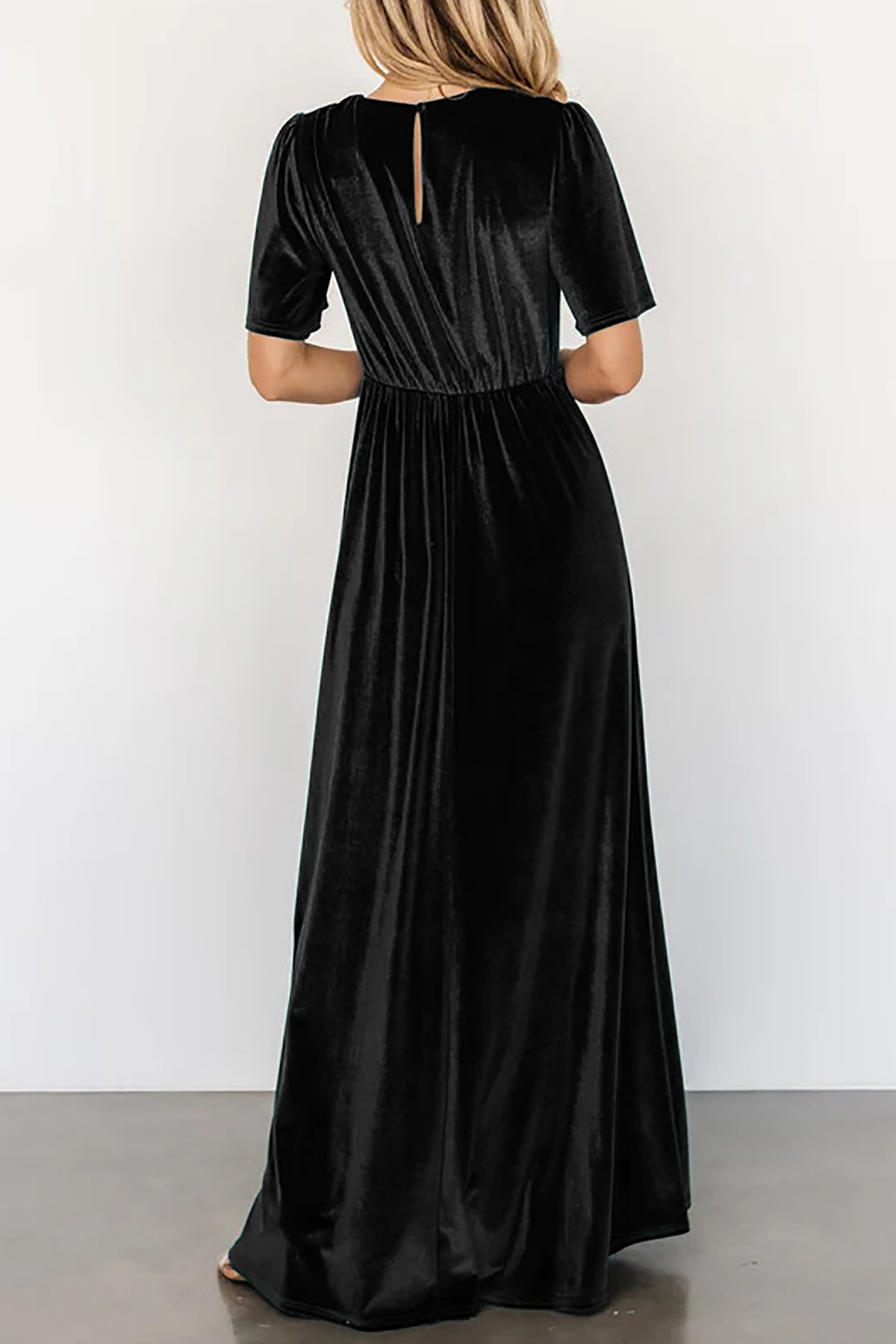 R.Vivimos Womens Fall Velvet Maxi Dress 2025 Short Sleeve V Neck Elegant Vintage Flowy Long Dresses 17