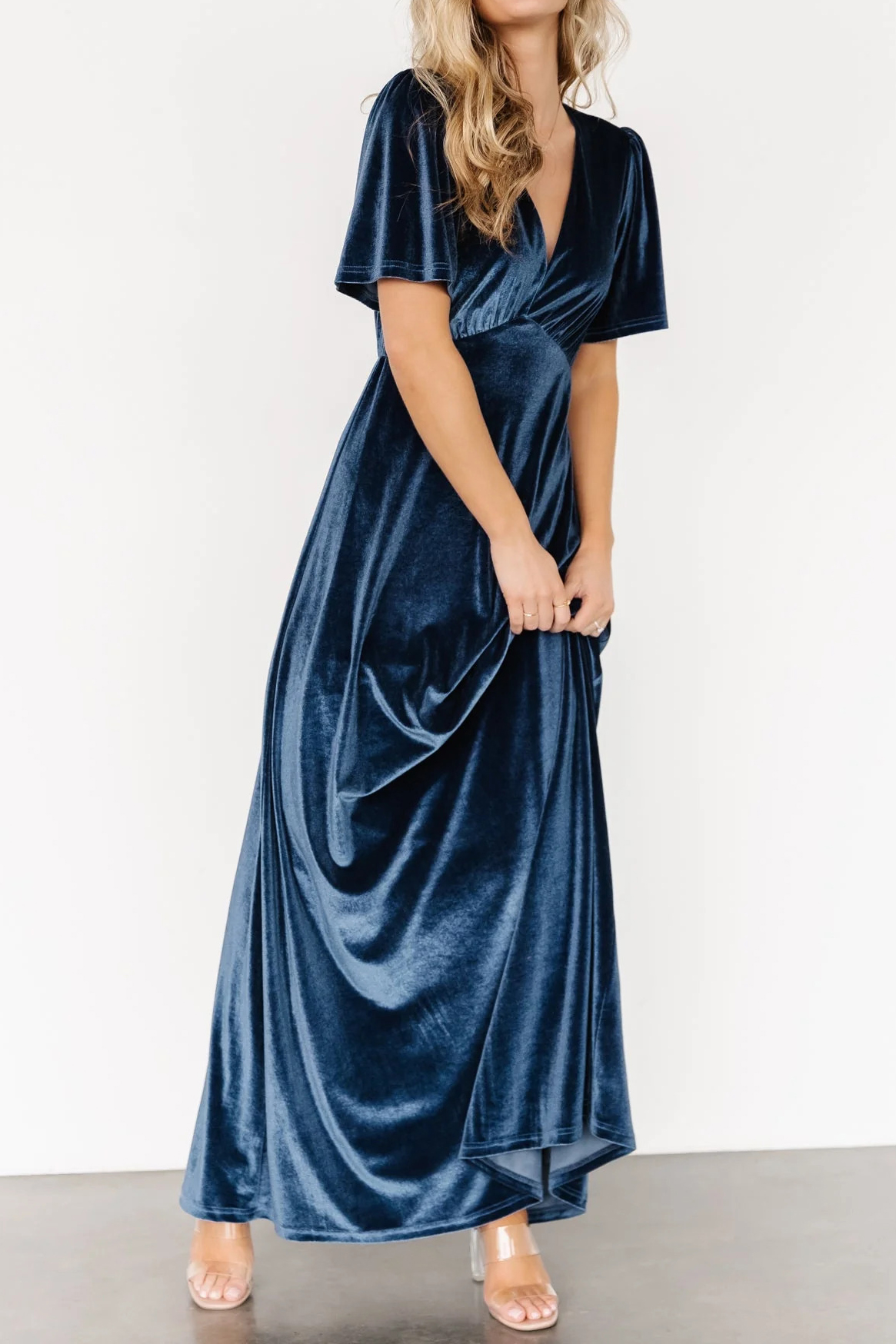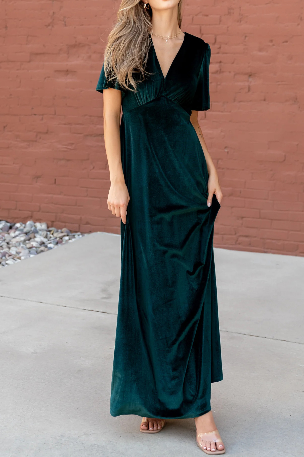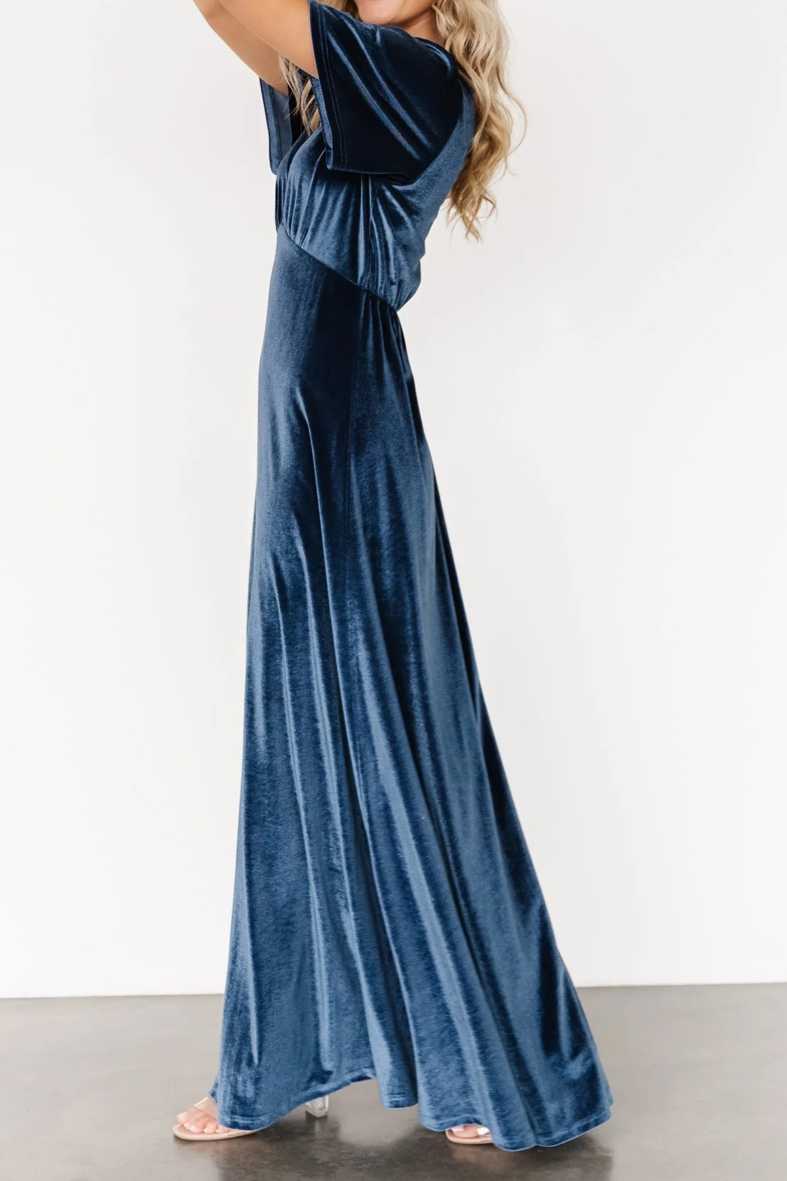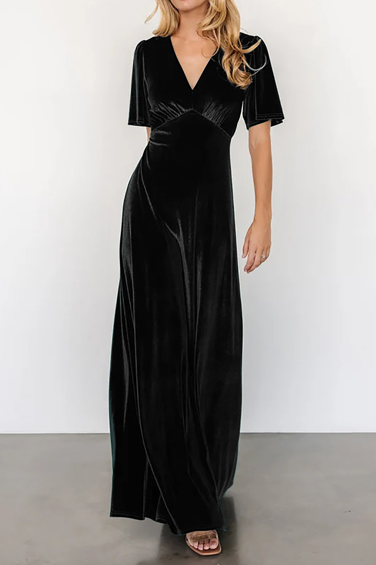 R.Vivimos Womens Fall Velvet Maxi Dress 2025 Short Sleeve V Neck Elegant Vintage Flowy Long Dresses 15