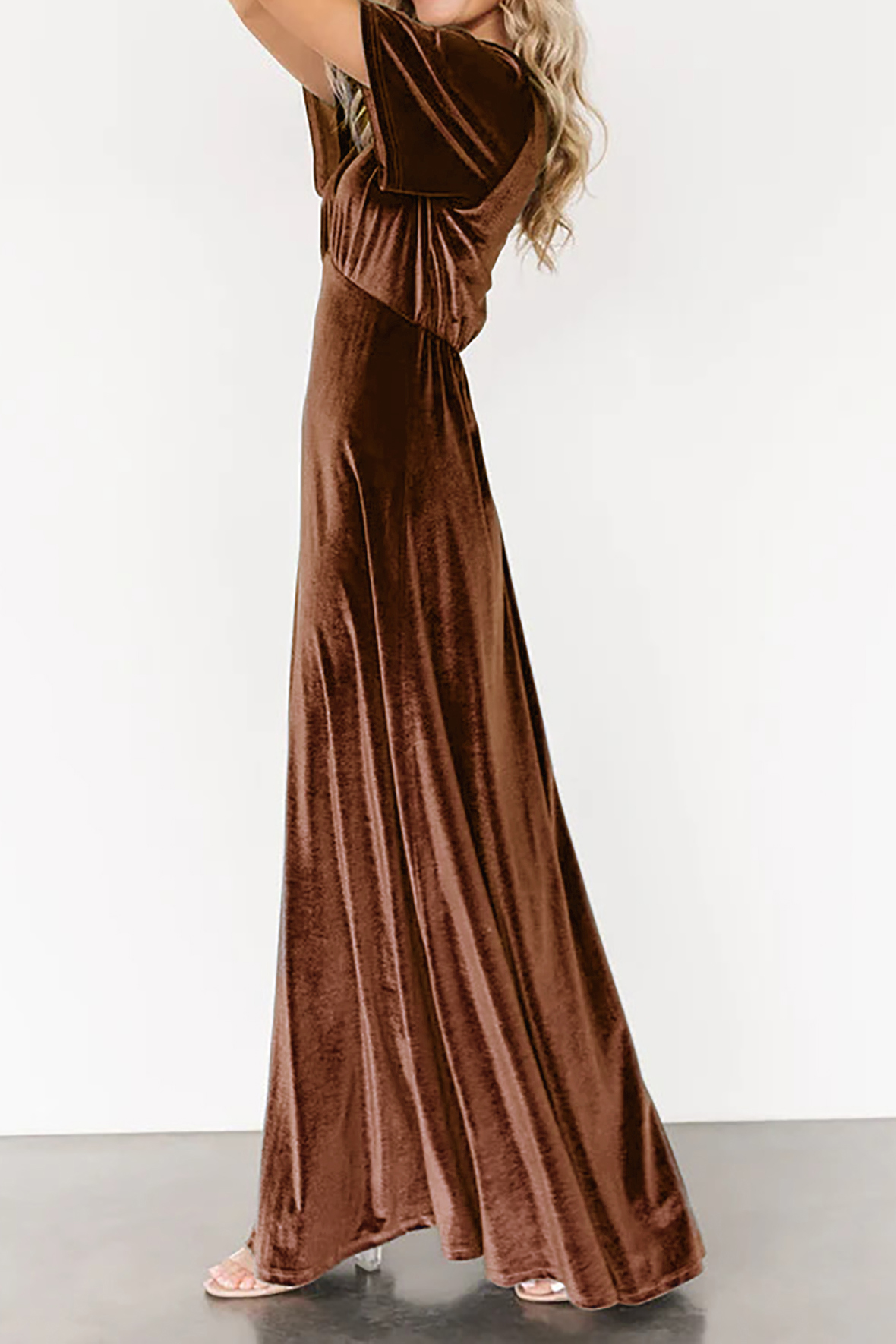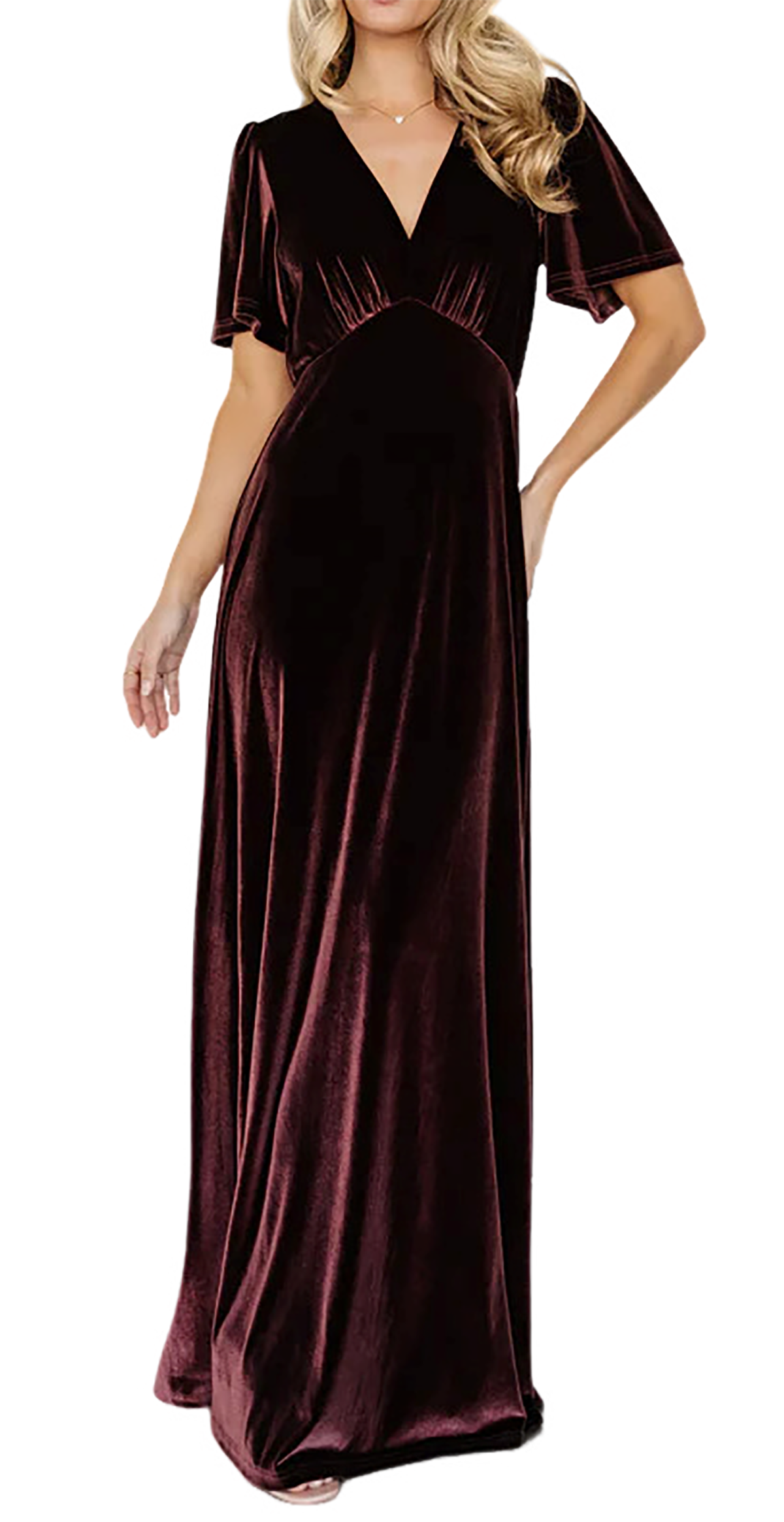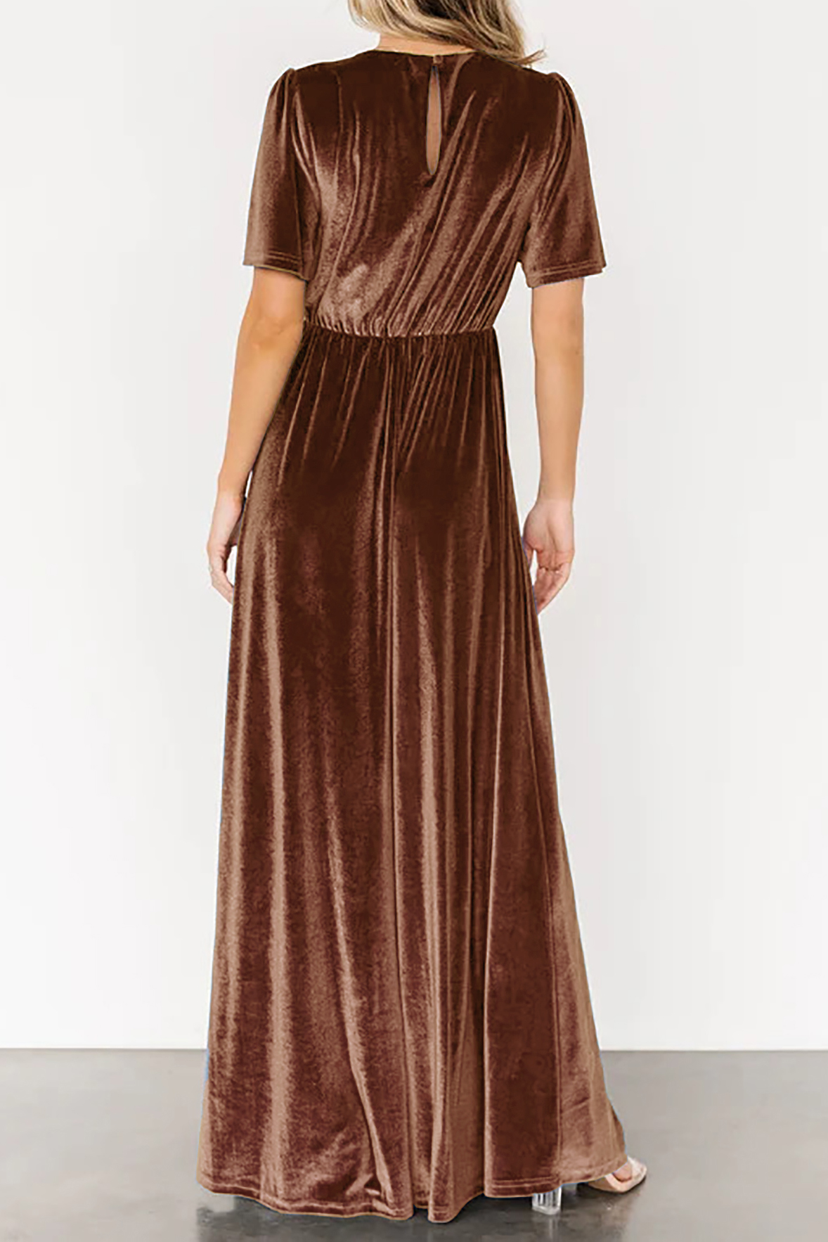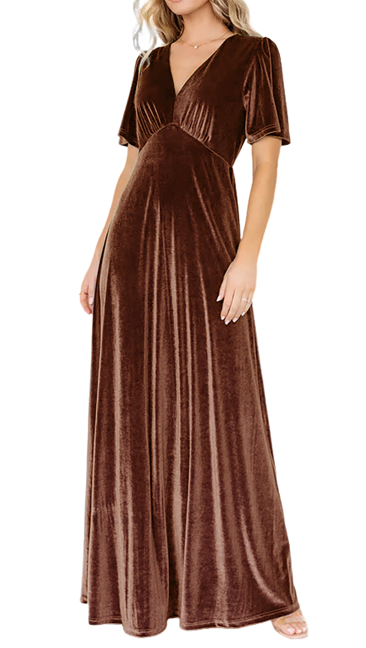 R.Vivimos Womens Fall Velvet Maxi Dress 2025 Short Sleeve V Neck Elegant Vintage Flowy Long Dresses 27