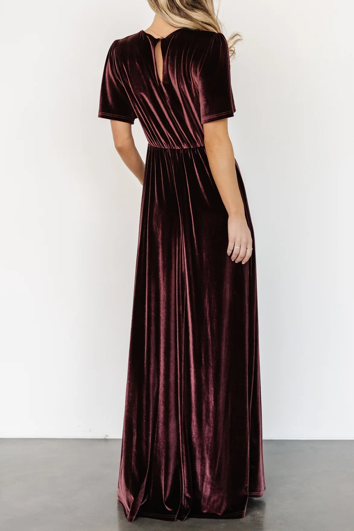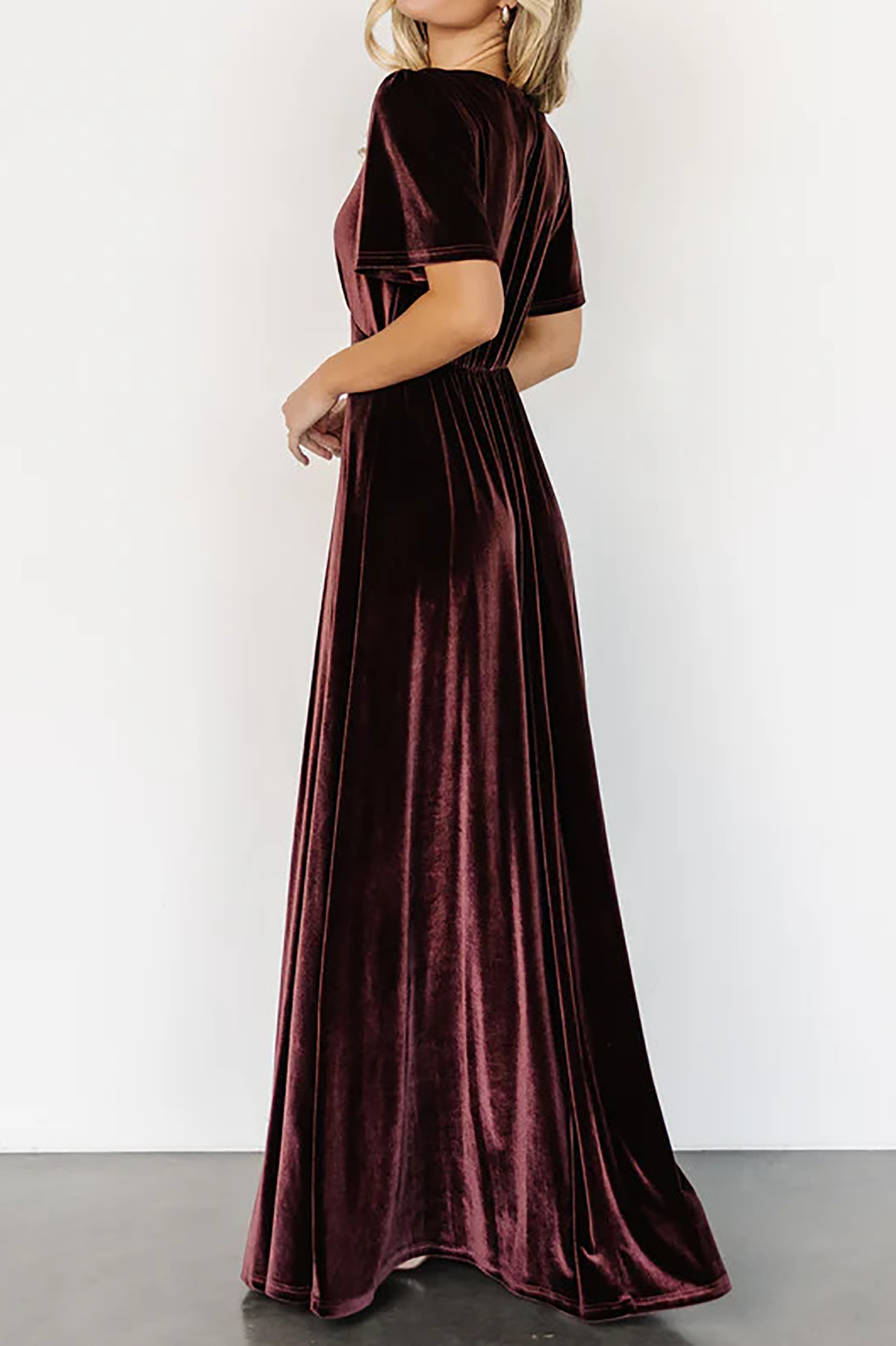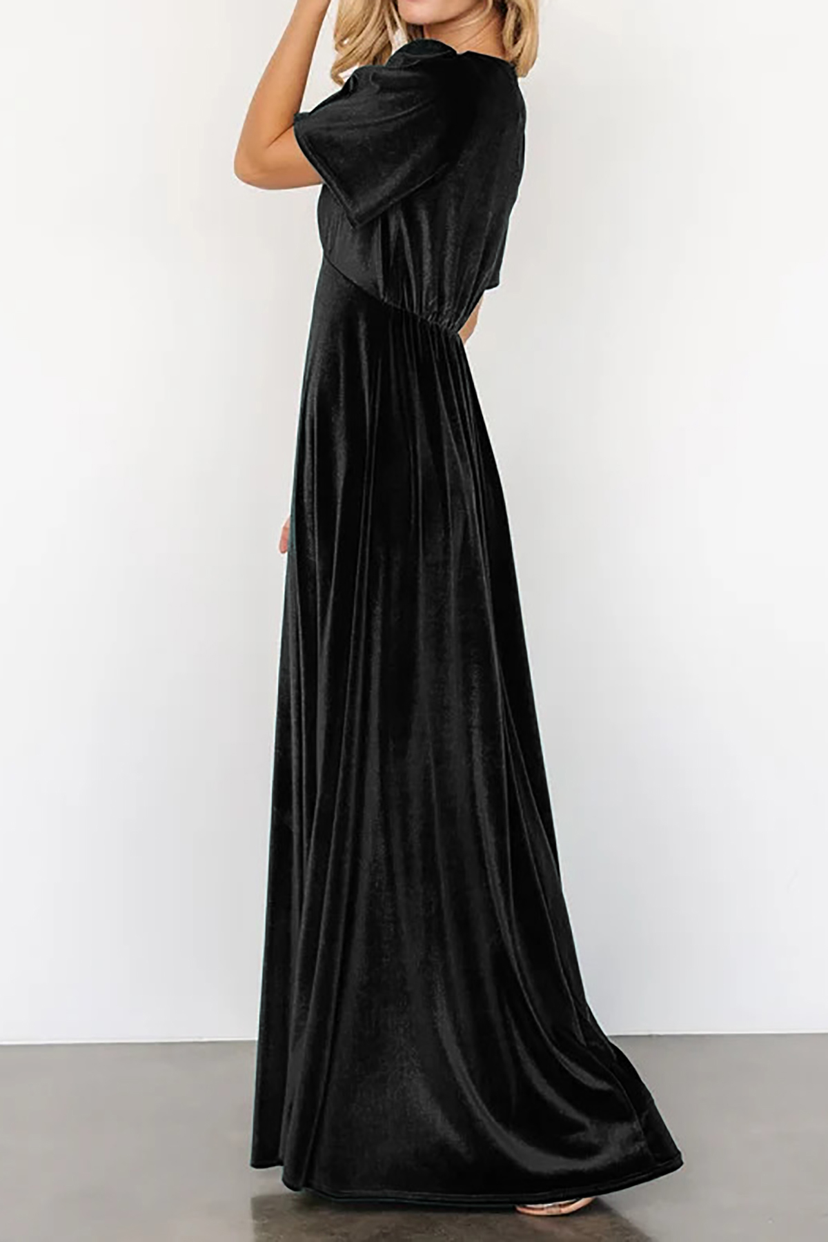 R.Vivimos Womens Fall Velvet Maxi Dress 2025 Short Sleeve V Neck Elegant Vintage Flowy Long Dresses 9