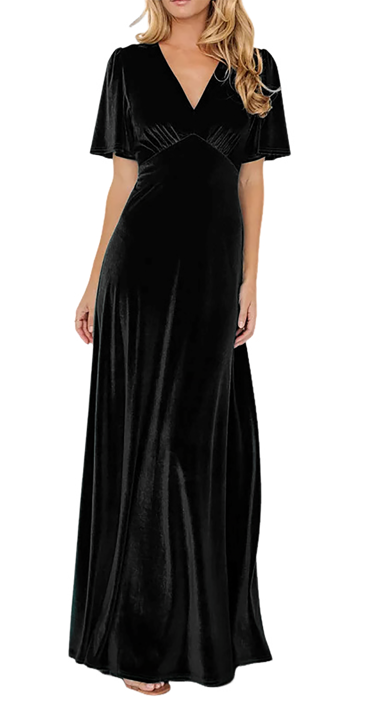 R.Vivimos Womens Fall Velvet Maxi Dress 2025 Short Sleeve V Neck Elegant Vintage Flowy Long Dresses 22