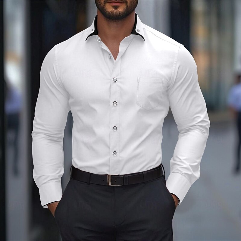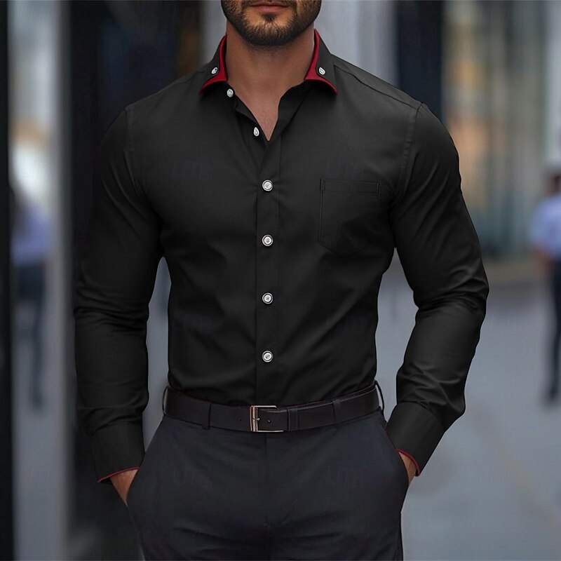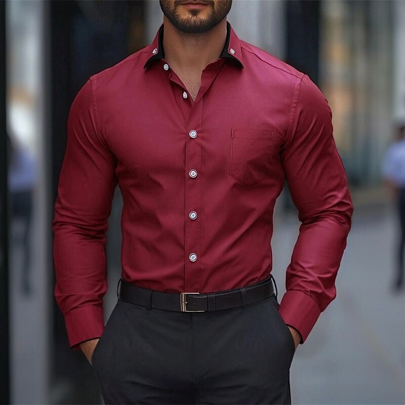 More information about Men's Dress Shirt Button Down Shirt Wrinkle Resistant Wedding Outdoor Light Blue Black White Wine Long Sleeve Summer Spring Clothing Apparel