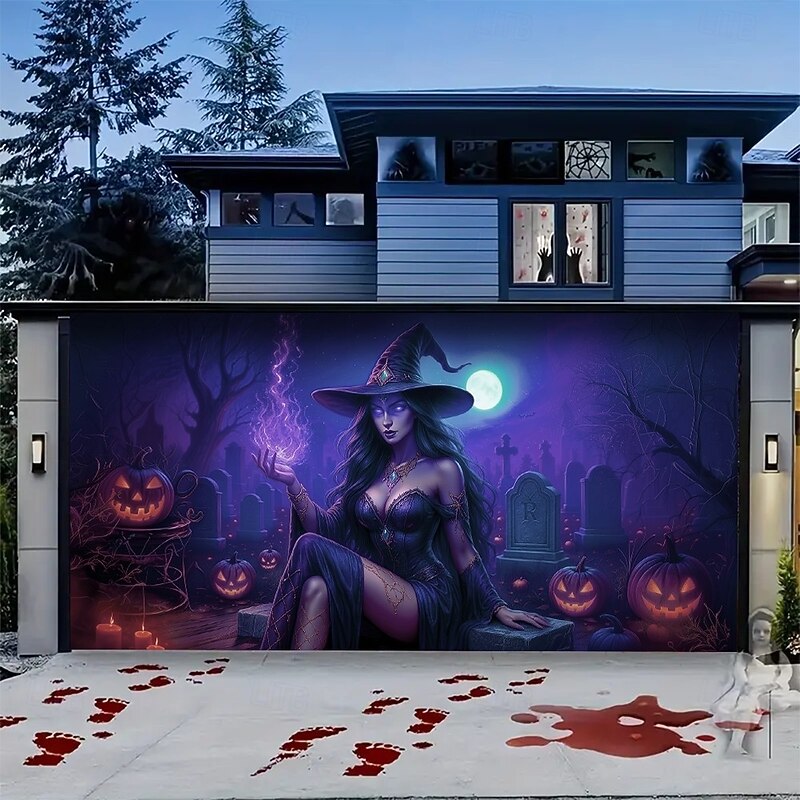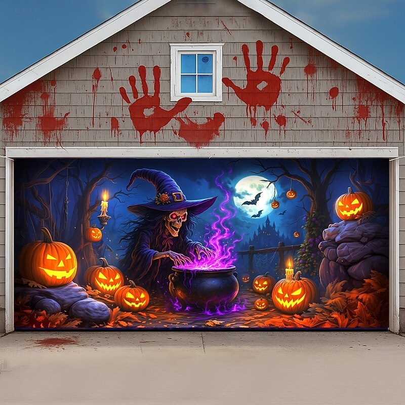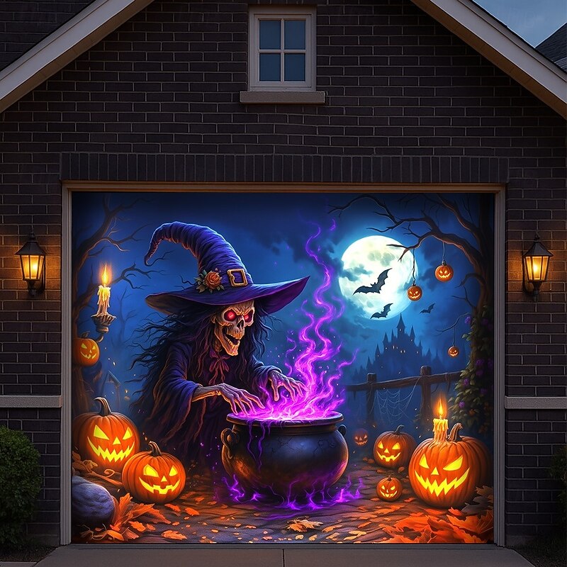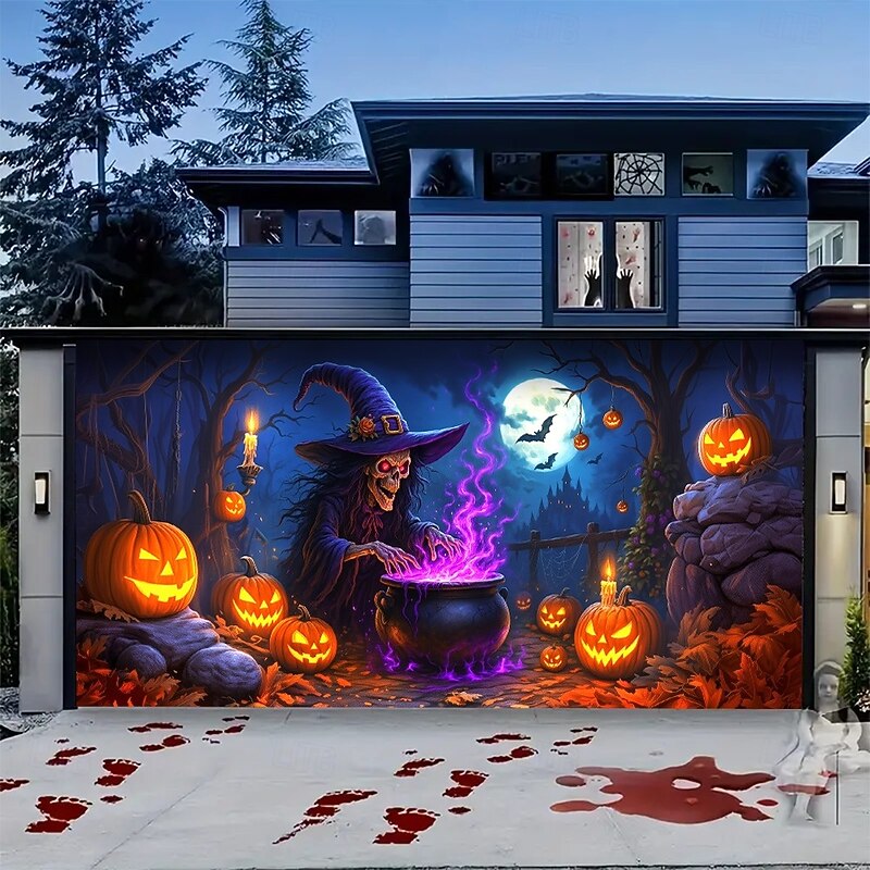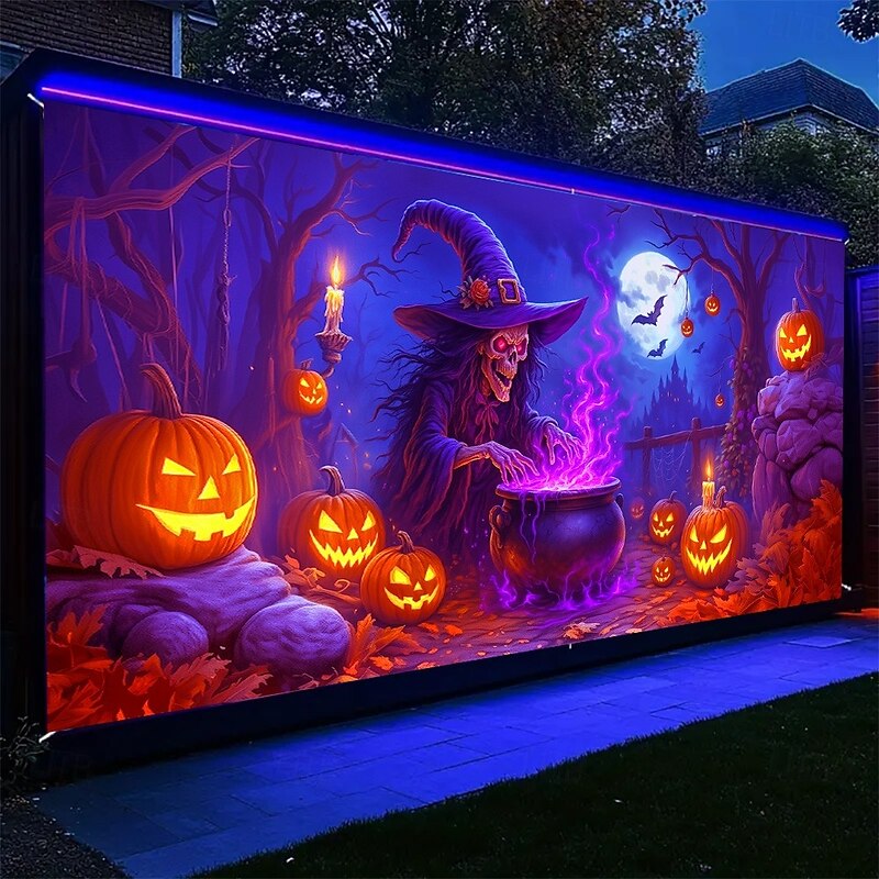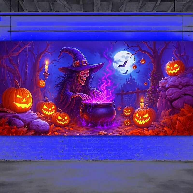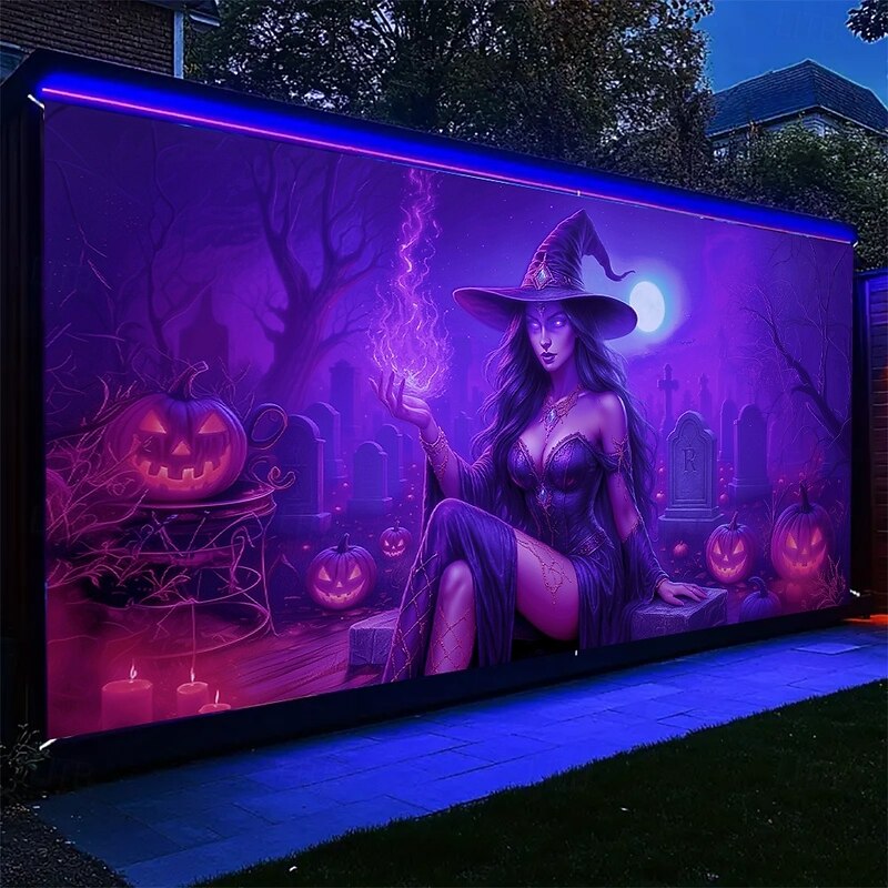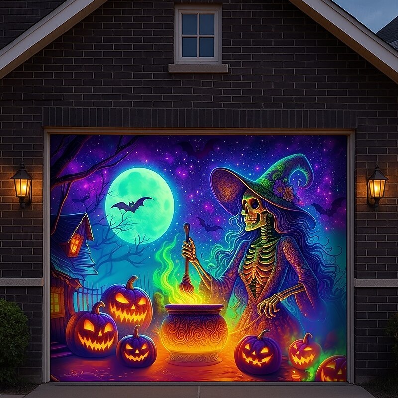 $34.99 - Halloween Garage Door Cover Neon Dancing Skeletons with Pumpkins Banner, Glowing Blacklight Backdrop Decoration for Holiday Outdoor Garage Door and Home Wall, 2025 Halloween Decorations 2025. Shop for cheap Halloween Garage Door Cover online? Buy at lightinthebox.com on sale today!
