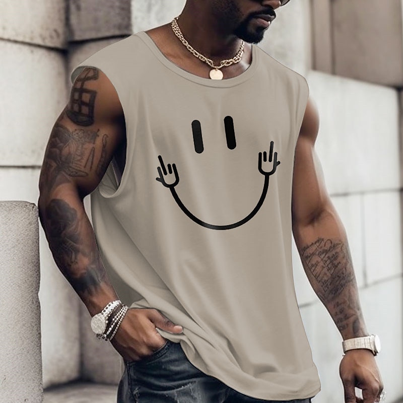 Men's Graphic Smile Face Vest Top Sleeveless T Shirt for Men Cap Sleeve T shirt 3D Print Crew Neck Shirt Fashion Designer Muscle Daily Sports Gym Black White Navy Blue Spring & Summer Clothing Apparel
