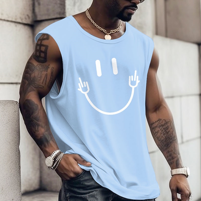 More information about Men's Graphic Smile Face Vest Top Sleeveless T Shirt for Men Cap Sleeve T shirt 3D Print Crew Neck Shirt Fashion Designer Muscle Daily Sports Gym Black White Navy Blue Spring & Summer Clothing Apparel