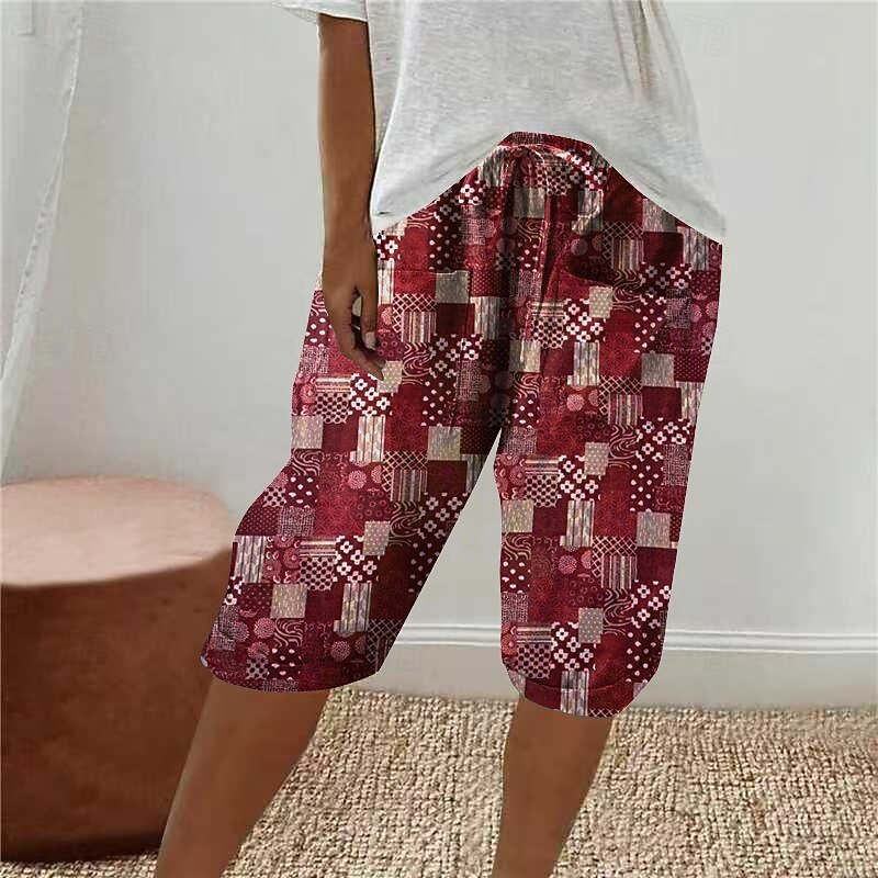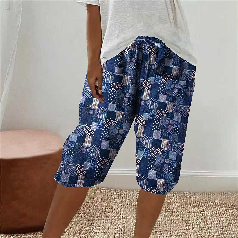 More information about Women's Linen-Inspired Shorts Capri Pants Slacks Streetwear Casual Calf-Length Natural Flower Printing Elastic Drawstring Design Outdoor Comfortable Street Daily Wear Magenta Black Blue Khaki Summer