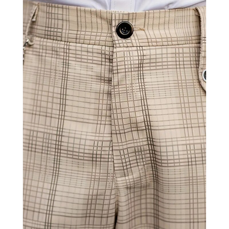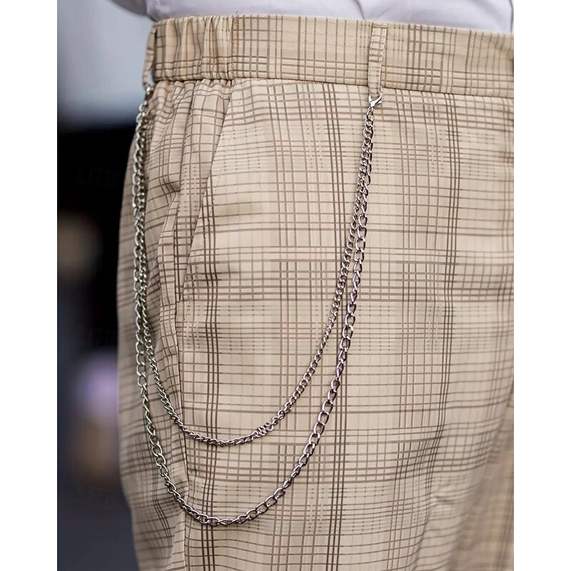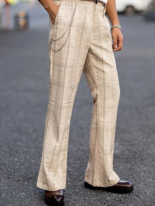 Men's Dress Pants Trousers Chinos Pocket Buttons Plaid Comfort Formal Party Work Fashion Classic Style Khaki Micro-elastic 8