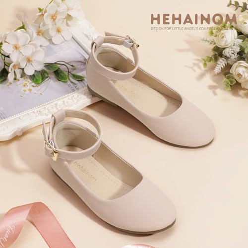 Hehainom Girls Dress Shoes Wedding Party School Ankle Strap Ballet Flats Shoes Little Big Kids Flower Girl Shoes 4