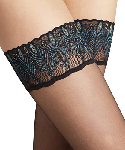 FALKE Women's Lunelle Peacock Thigh Highs, Ultra Sheer 8 Denier, Stockings with Colorful Feather Lace Design, 1 Pair 1