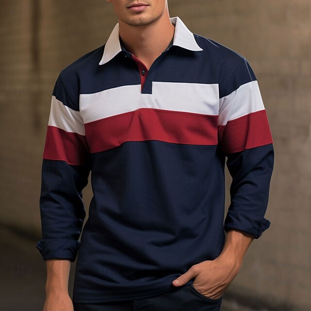 More information about Men's Striped Rugby Polo Shirts Long Sleeve Polo Shirts Collar Casual Formal Outdoor Dailywear 3D Print Buttons Spring Fall Winter Ink Blue