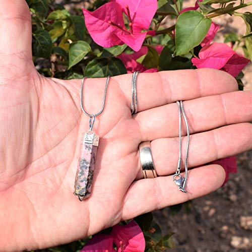 More information about Zenergy Gems Selenite Charged Faceted Hand-Made Natural Rhodonite Crystal Pencil Point Pendants + Selenite Heart Charging Crystal [Included]