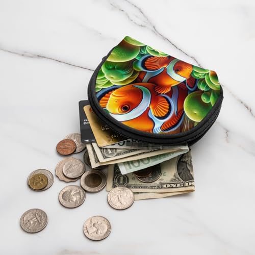 Portable Coin Purse Clownfish-Tropical-Fish Mini Zippered Money Pouch Card Holder 5