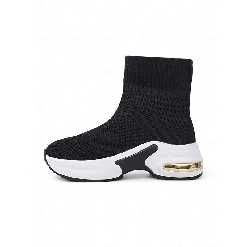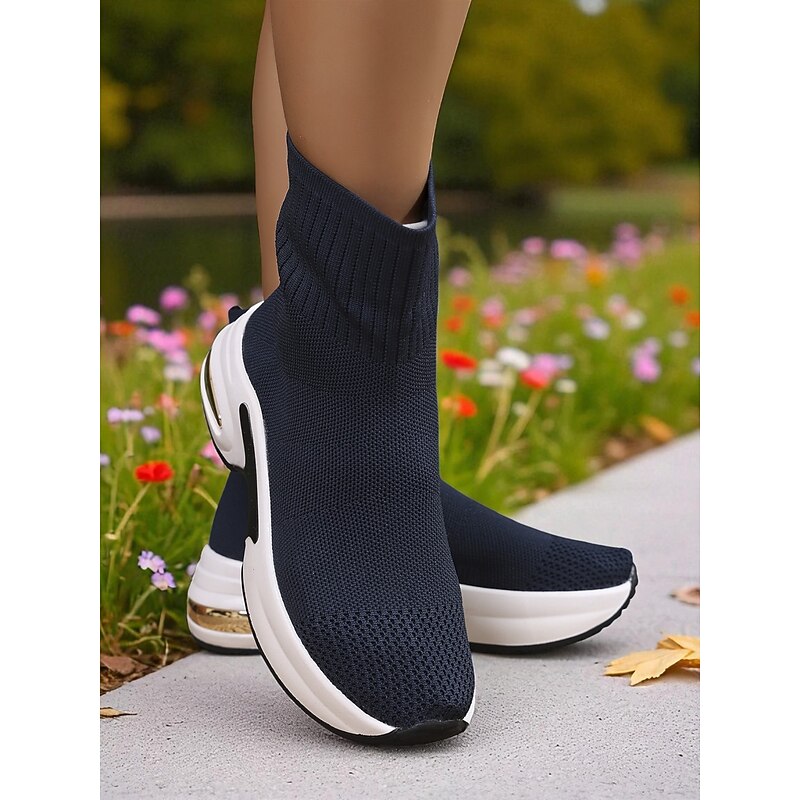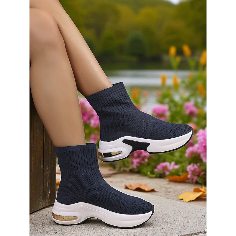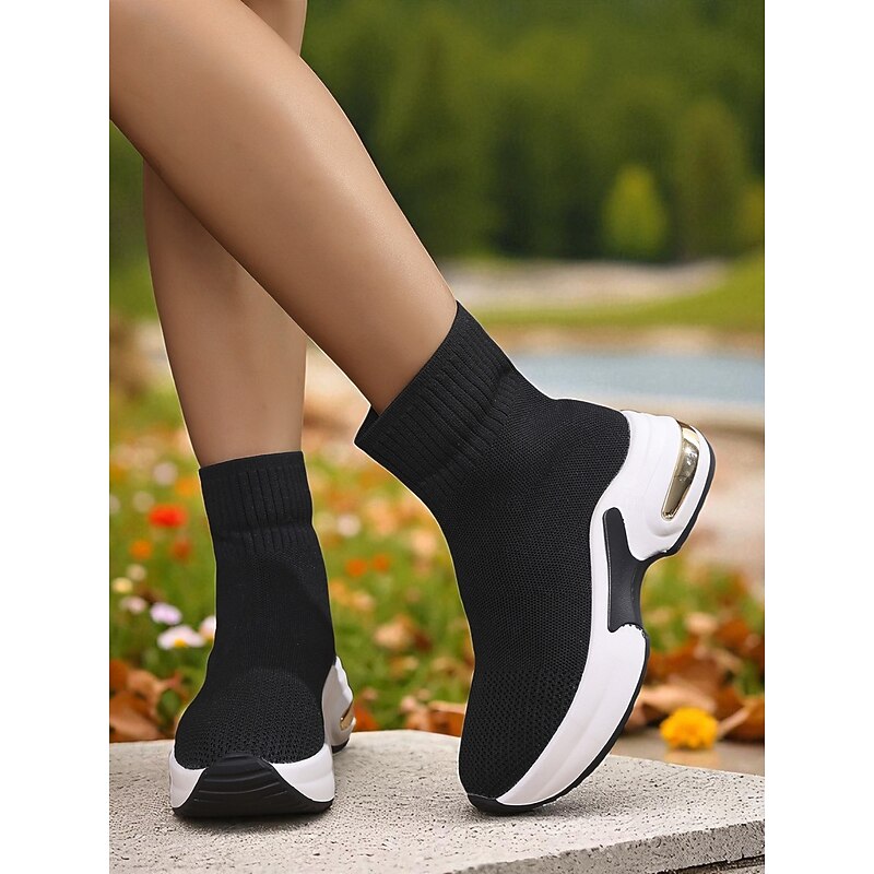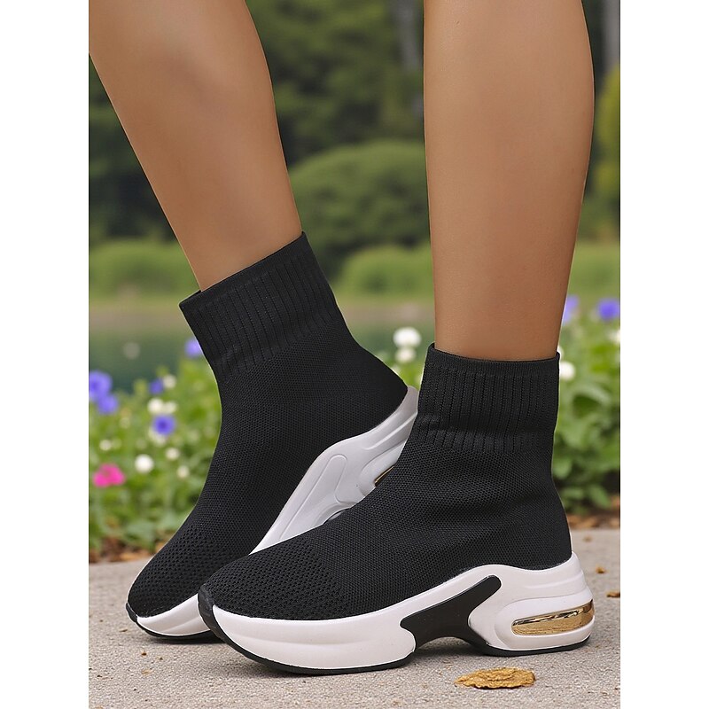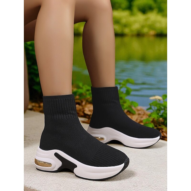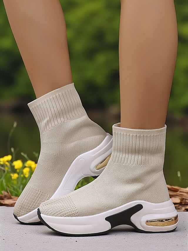 HOT ! Women's Beige Flyknit Sock Boots with Platform Sole – Lightweight Casual Walking Shoes for Outdoor, Travel and Sports