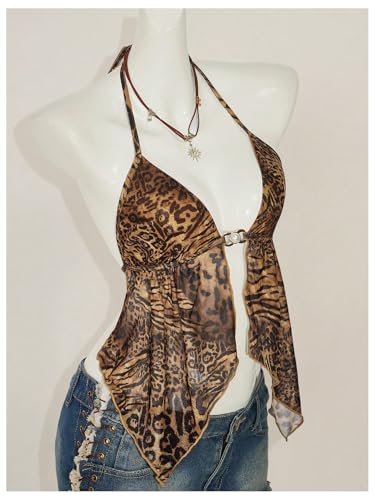 HOT ! Women's Y2K Cheetah Halter Top Leopard Sleeveless Open Back Going Out Cami Tops