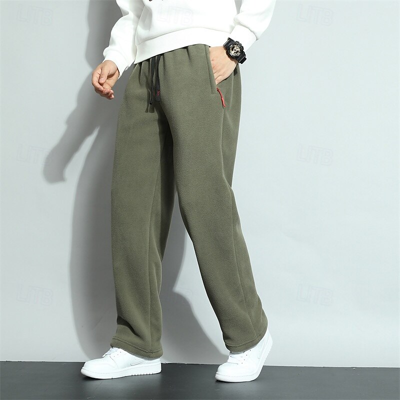 HOT ! Men's Sherpa Athletic Pants Trousers Straight Leg Sweatpants Pocket Drawstring Elastic Waist Plain Comfort Warm Sports Outdoor Daily Fashion Casual ArmyGreen Black Micro-elastic