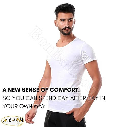• ✅ - A New Feeling That Suits You Perfectly , So You Can Spend Day After Day In Your Own Way That Suits You , As It Is Very Comfortable And Super Soft .100% Cotton This Crewneck Undershirt And Designed With Short-Sleeves And a Straight Hem Which Are Finished With Soft For All Day Comfort .
