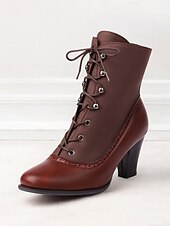 More information about Victorian Vintage Lace-Up Ankle Boots with Heels for Women – Retro Style Faux Leather and Fabric High Heel Boots