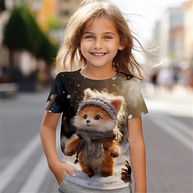 HOT ! Girls' 3D Animal T shirt Tee Short Sleeve Summer Spring Fashion Basic Kids 4-12 Years Crew Neck Outdoor Casual Daily Regular Fit