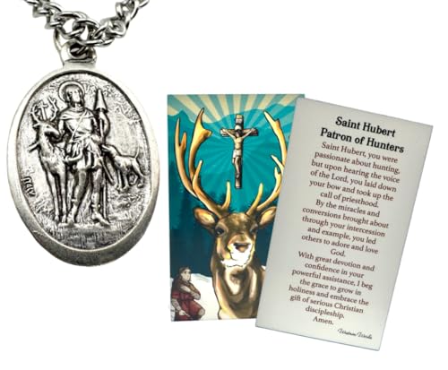 HOT ! Westmon Works St Hubert Patron Saint of Hunters Set Medal with Stainless Steel Chain Holy Card Boxed
