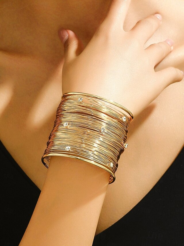$11.99 - Women's Gold Layered Wire Cuff Bracelet - Rhinestone Studded Statement Bangle for Evening Parties and Cocktail Events 2025. Shop for cheap Women's Bracelet online? Buy at lightinthebox.com on sale today!