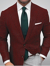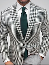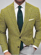 More information about Men's Blazer Jacket Sport Coat Closure collar Outdoor Casual Houndstooth Checkered Black Yellow Light Green Tailored Fit Single Breasted Two-buttons