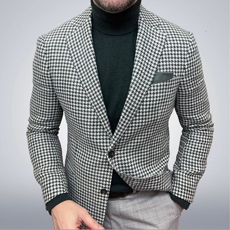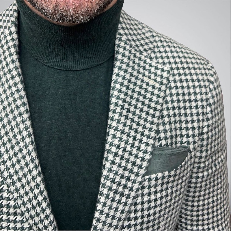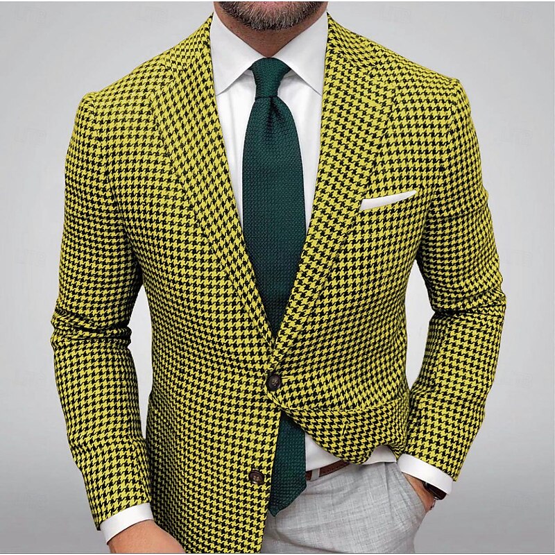 Men's Blazer Jacket Sport Coat Closure collar Outdoor Casual Houndstooth Checkered Black Yellow Light Green Tailored Fit Single Breasted Two-buttons 11