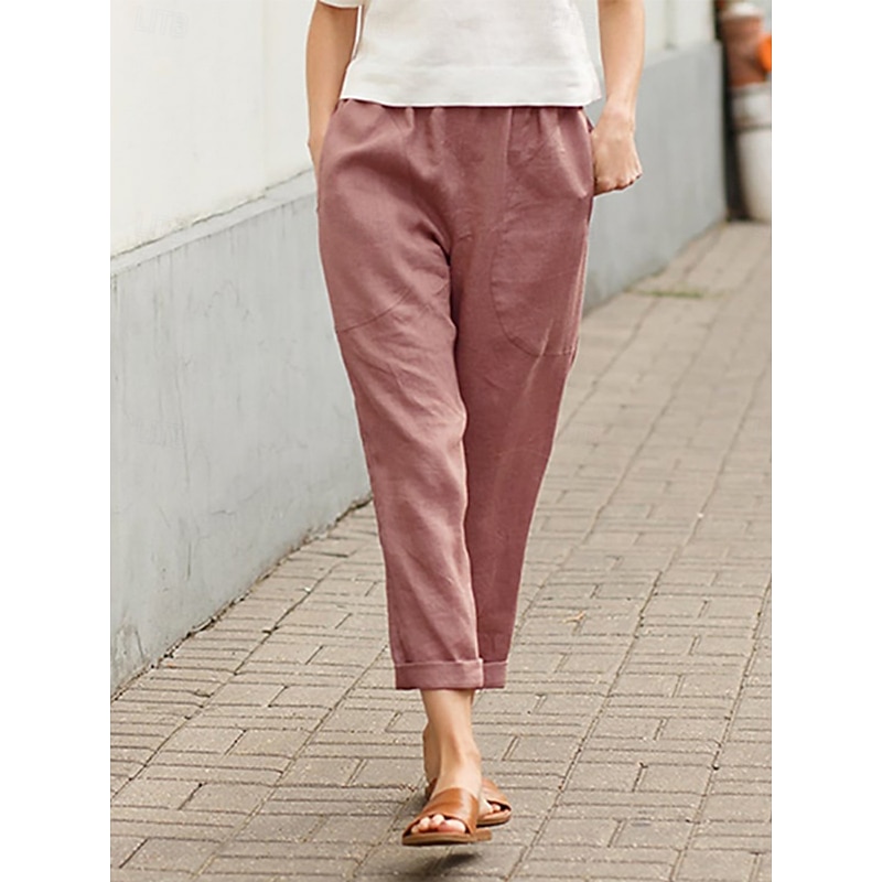 More information about Women's Cotton Linen Pants Chinos Fashion Streetwear Full Length High Waist Plain Pocket Elastic Waistband Comfy Soft Comfortable Micro-elastic Outdoor Street White Red Khaki Summer Spring Regular Fit