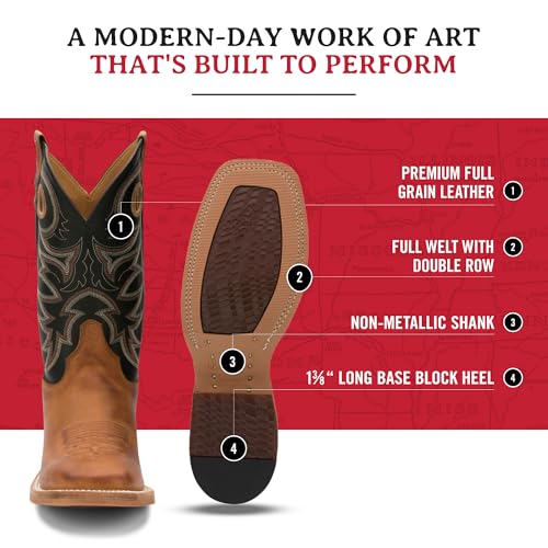 More information about Justin Caddo 11" Western Boots for Men - Durable Premium Full-Grain Leather Square Toe Cowboy Boots Built with Full Double-Stitch Welt Construction