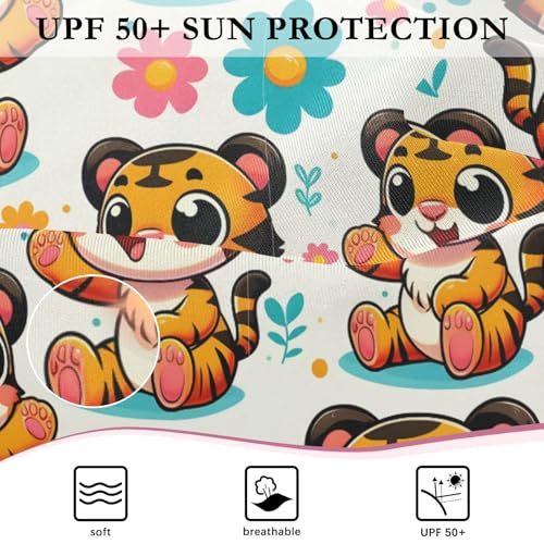 Cute Cartoon Tigers Girls Long Sleeve Swimsuit Rash Guard One Piece Bathing Suits Zipper 3-12T 7