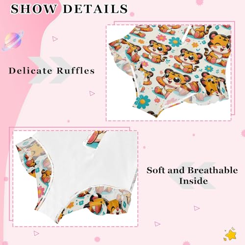 Cute Cartoon Tigers Girls Long Sleeve Swimsuit Rash Guard One Piece Bathing Suits Zipper 3-12T 6