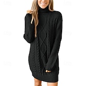 Women's Mini Dress Sweater Dress Fashion Modern Vacation Going out Regular Fit Plain Long Sleeve Turtleneck Black Wine Army Green Khaki Fall Winter 15